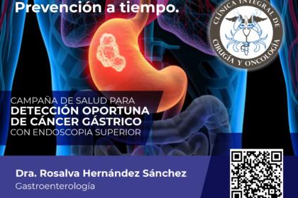 Únete a nuestra Campaña de Detección Oportuna de Cáncer Gástrico en la Clínica Integral de Cirugía y Oncología con la Dra. Rosalva Hernández Sánchez. Durante diciembre de 2023 y enero de 2024, te ofrecemos consultas gratuitas de endoscopia superior para cuidar tu salud gástrica.