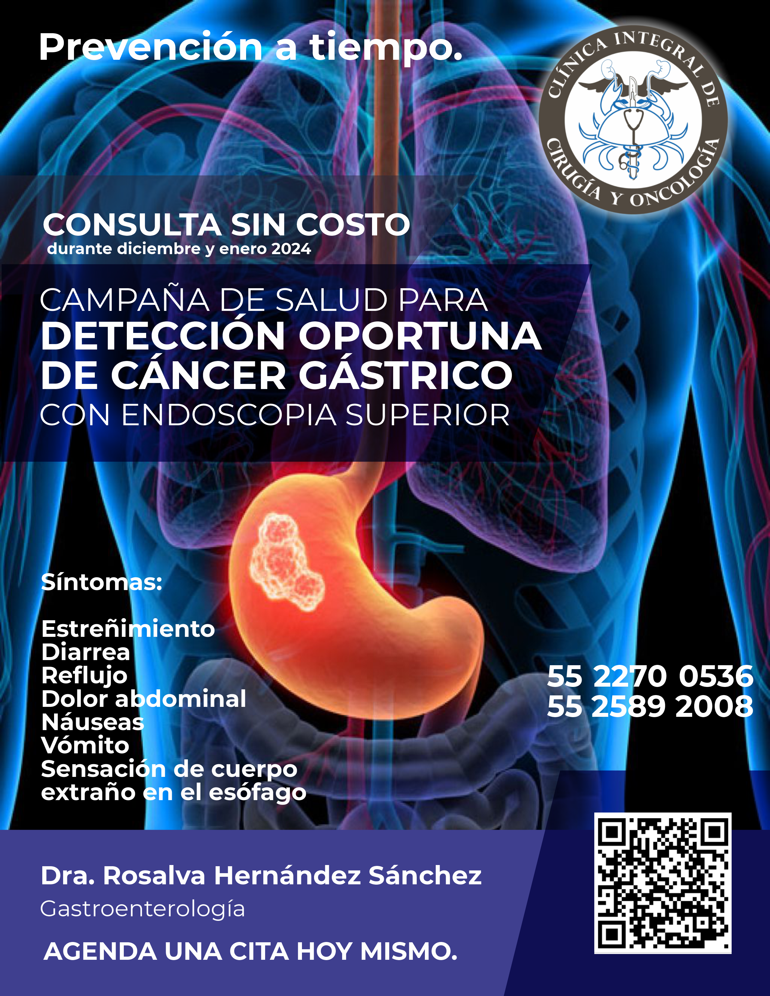 #DetecciónOportuna #CáncerGástrico #CampañaSalud #ConsultaGratuita #ClínicaIntegral #DraRosalvaHernández #EndoscopiaSuperior #SaludPreventiva #CuidadoGástrico #Bienestar #AgendaTuCita #Oncología #PrevenciónCáncer #VidaSaludable #CáncerGástricoPrevención